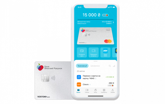 На сайте нового приложения указано, что кредитный лимит по картам "Власного Рахунку" составляет 100 тысяч грн, льготный период — 62 дня. Проценты на остаток на счету будут начисляться из расчета 7% годовых.