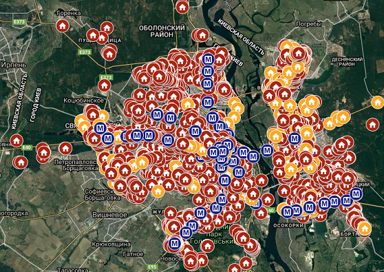 На карті додано позначки з уточненнями, яка саме споруда подвійного використання знаходиться за адресою: підвал; підземний паркінг; підземний перехід; станція метро та чи облаштовано на ній пандус.