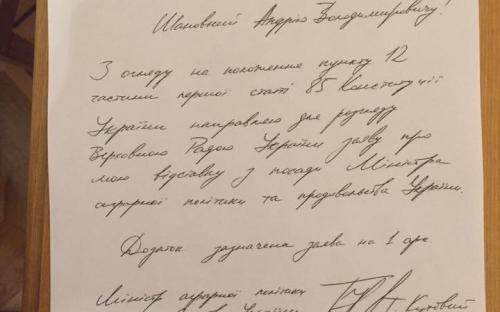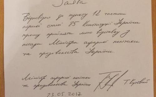 Министр аграрной политики и продовольствия Украины Тарас Кутовой подал в отставку.