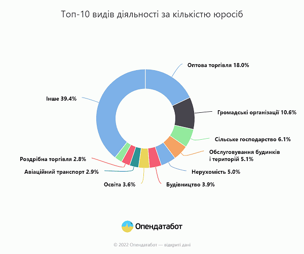 В Украине торговля является популярнейшим направлением деятельности среди юридических лиц. Ею занимается 23% от общего числа компаний.