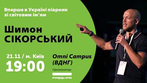 21 листопада 2018 р. відомий європейський піарник Шимон Сікорський, який консультував впливових польських політиків і бізнесменів, розповість українським колегам про найновіші європейські тренди у PR та комунікаціях. Зокрема, виборчих, що, напередодні українських виборів президента України, може знадобитися піар-командам кандидатів у президенти. Зустріч, медіа-партнером якої виступає Нова Влада, організовує компанія з управління комунікаціями та репутацією FRESHPR.