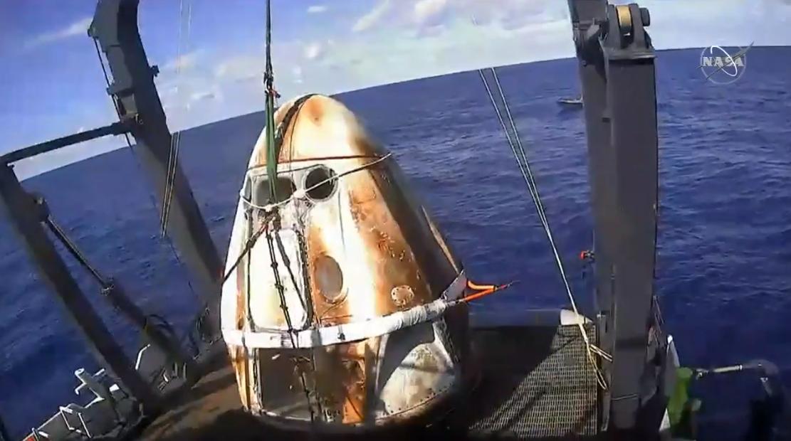 Спускаемая капсула новейшего американского космического корабля многоразового использования Crew Dragon компании SpaceX в пятницу в 15:45 по Киеву после пятидневного совместного полета в составе Международной космической станции (МКС) успешно приводнилась в Атлантике, сообщило Национальное управление США по аэронавтике и исследованию космического пространства (NASA), пишет "Интерфакс-Украина".