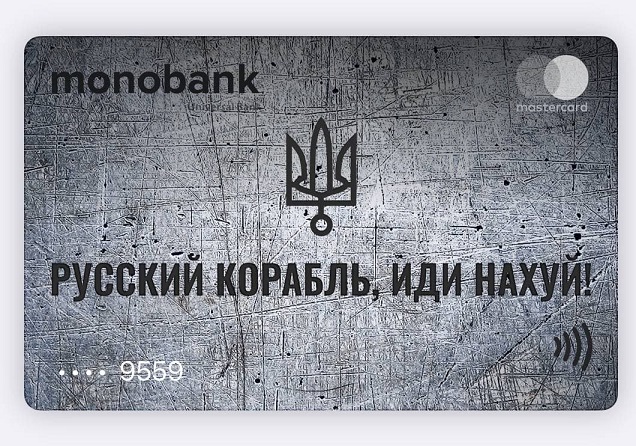 Monobank на всіх картках в Apple Pay та Google Pay змінив дизайн - тепер там ілюстрація з написом "Русский корабль, иди на#уй".