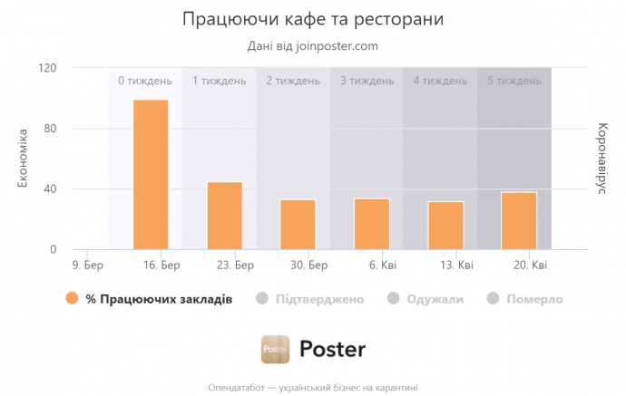 «Общий оборот клиентов Poster составлял 230 млн грн до карантина, теперь он составляет лишь 63 млн грн (то есть упал в 3,6 раза, - Ред.)», - говорится в сообщении.