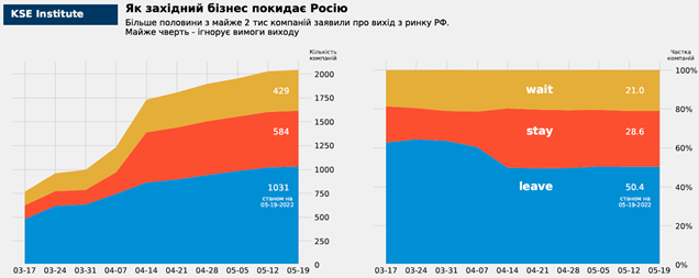 Як західний бізнес покидає росію в динаміці – з 17 березня до 19 травня 2022 року (за даними KSE)