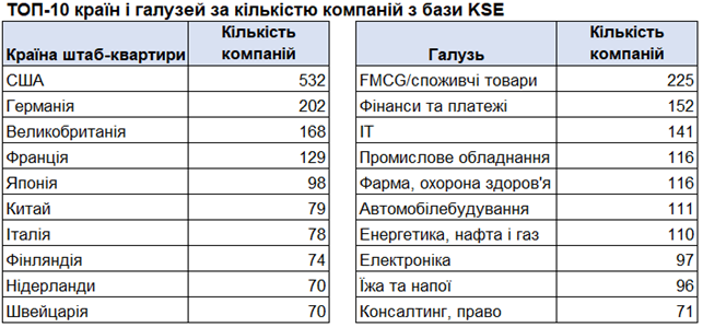 За даними аналітиків, на цю дату вони ідентифікували вже близько 2045 компаній та організацій і їхню позицію щодо роботи на ринку рф, близько половини з них – публічні (див. також нижче «Топ-10 країн і галузей за кількістю компаній з бази KSE», які присутні на росії):