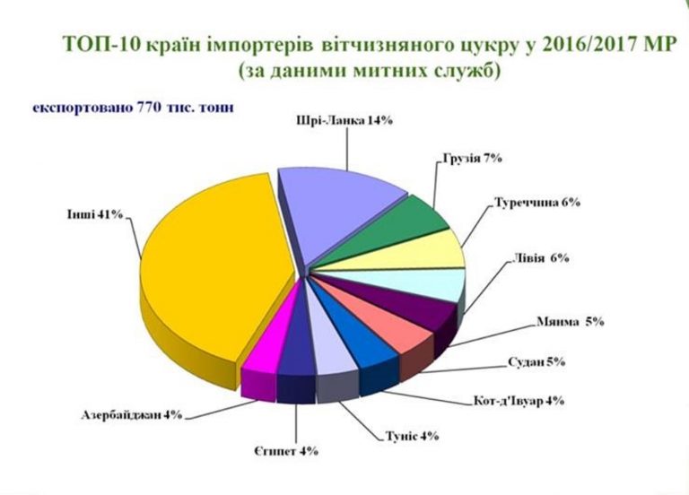 По данным таможенных служб, больше всего отечественного сахара закупила Шри-Ланка — 112,2 т. на $ 57 млн. Также в тройку лидеров вошли Грузия и Турция, которые закупили 47,9 т. и 42,5 т. сахара соответственно.