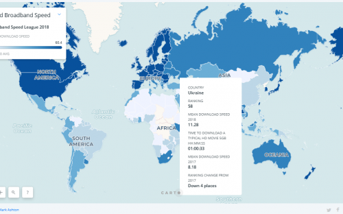 В целом сказать, что позиции страны в этом рейтинге плохие, нельзя. Если смотреть на общую карту скорости интернета в мире, Украина — среди стран с результатом выше среднего.