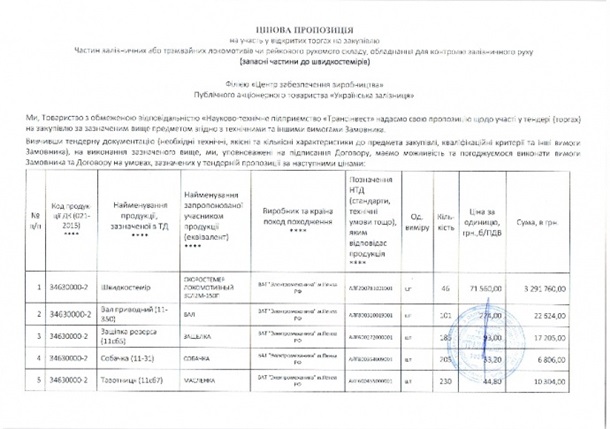Отмечается, что в сентябре 2018 года Филиал Центр обеспечения производства ПАО Украинская железная дорога провела тендер на закупку локомотивных скоростемеров и запчастей к ним общей стоимостью 25,5 млн грн.
