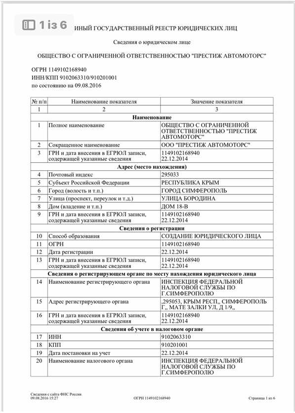 У Криму ж в листопаді 2014 року компанія ТОВ «Престиж Авто Крим» була зареєстрована вже за російським законодавством, а її директором став такий собі Енвер Решетов. За тією ж адресою, що і «Престиж Авто Крим», в окупованому Сімферополі була за російським законодавством зареєстрована та знаходиться ще одна російська фірма – «Престиж Автомоторс», яка є офіційним дилером китайських автівок «Haval».