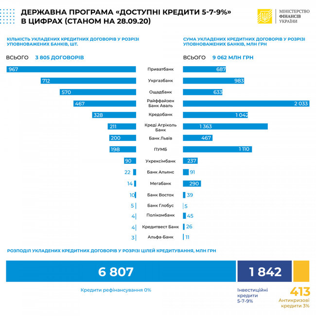 Уполномоченными в рамках программы "Доступные кредиты 5-7-9%" являются 18 банков: "Укргазбанк", "Ощадбанк", "Приватбанк", "Укрэксимбанк", банк "Львов", ПУМБ, "Кредобанк", "Альфа-Банк", банк "Альянс", "ТАСкомбанк", банк "Восток", "Поликомбанк", "Мегабанк", "Райффайзен банк Аваль", банк "Глобус", "Креди Агриколь Банк", а также "ОТП Банк" и "Кредитвест Банк".