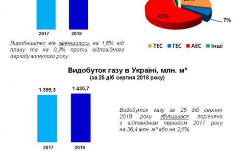В Украине добыча газа за 25 дней августа выросла по сравнению с соответствующим периодом 2017 года на 36,4 миллиона кубометров, или на 2,6 процента.