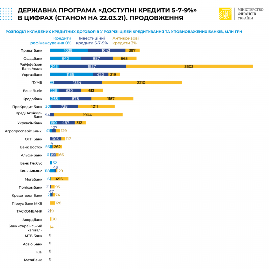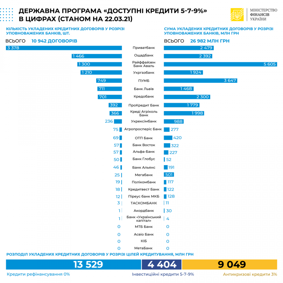 По государственной программе «Доступные кредиты 5-7-9%» выдано почти 11 тыс. кредитов на общую сумму 27 млрд грн.
