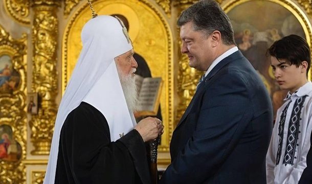 Президент Петр Порошенко вручил Почетному патриарху Православной церкви Украины Филарету обещанную ранее Звезду Героя Украины. Церемония вручения высшей госнаграды состоялась на торжественном приеме по случаю Дня Соборности Украины, который транслировался в прямом эфире украинских телеканалов, сообщает во вторник, 22 января, пресс-служба главы государства.