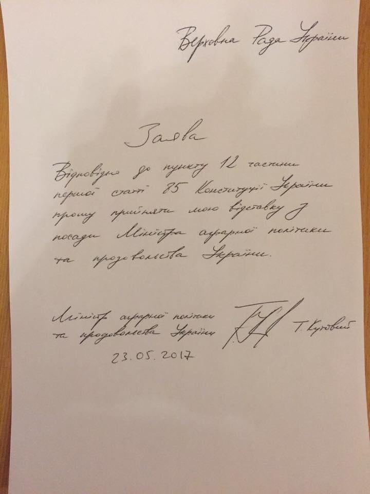 Со слов министра, с должности он идет с благодарностью депутатам коалиции и фракции БПП, президенту, премьеру, группе «Удар» и лично Виталию Кличко.