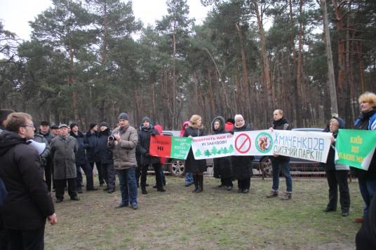В Киеве 20 декабря местные жители перекрыли проезжую часть, протестуя против застройки парка по вул.Генерала Жмаченко, 28.