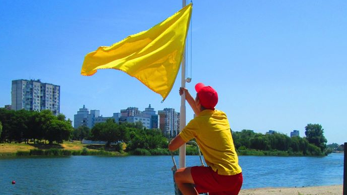 В КГГА уточнили, что желтый флаг означает «не рекомендуем купаться», зеленый – «купание разрешено», красный – «купаться запрещено!».