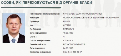 Позже в Генпрокуратуре пояснили, что вынесли постановление об объявлении в розыск Клюева и направили его в СБУ.