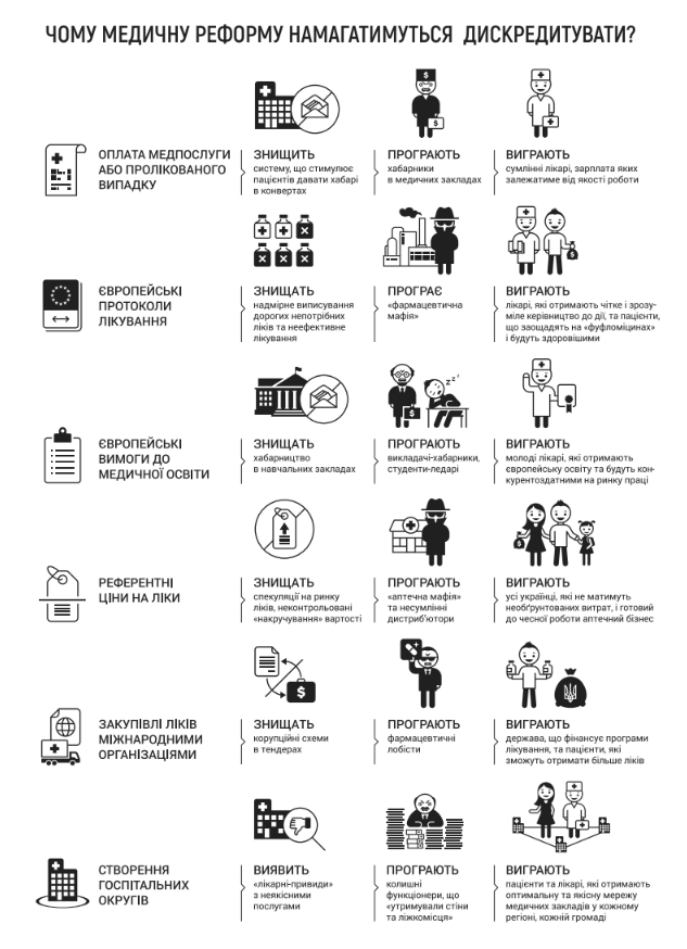 «На этой неделе важное голосования в Верховной Раде по рассмотрению базовых для реформы здравоохранения законов. Надеюсь, оно будет результативным. Чтобы украинцы жили дольше, нужно начинать долгожданные изменения в этой сфере. Просто и понятно то, кто и почему против этой реформы, и почему обычные люди и врачи выигрывают от ее проведения», — добавил премьер, опубликовав инфографику с «объяснением», кому выгодна и не выгодна медицинская реформа.
