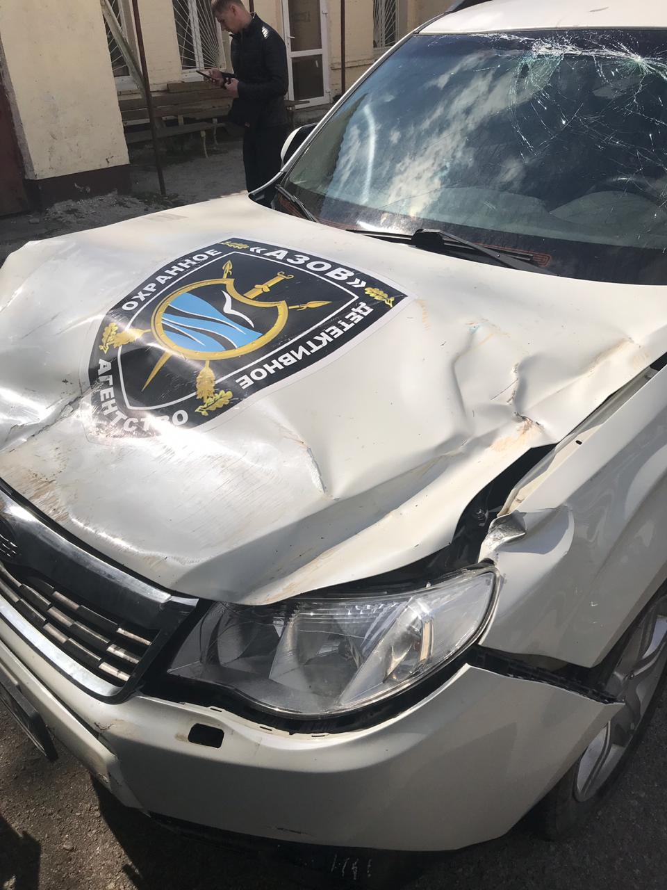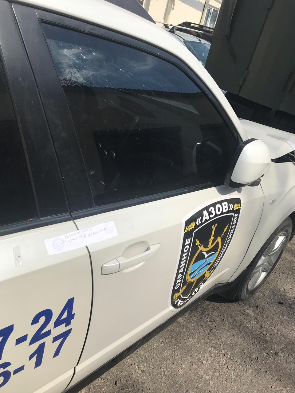 Поліція вилучила розстріляні автомобілі у якості речових доказів по справі збройного нападу бійців ГФ "Аскер" та "Айдар" на охоронну фірму "Азов". Див. нижче фотогалерею: