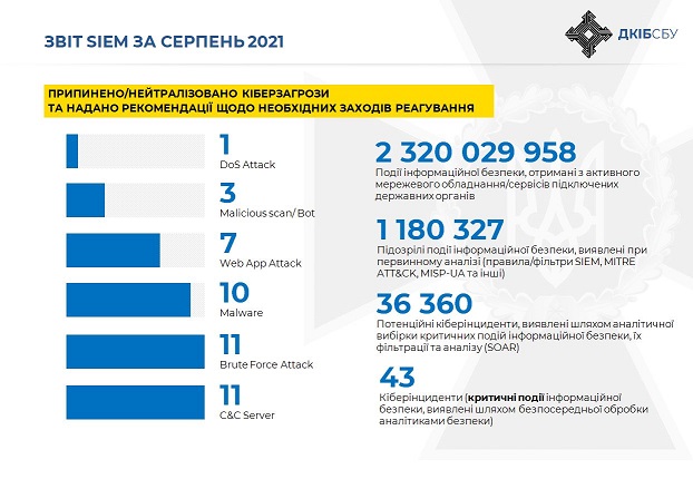 «Потенциально критические события непосредственно обрабатываются аналитиками безопасности, что позволяет оперативно выявлять, реагировать и предупреждать угрозы в национальном киберпространстве», — добавили в СБУ.