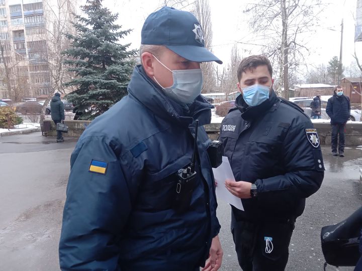 Після дворазового нагадування диспетчерам служби 102, приїхавши через 25 хвилин на виклик поліцейські Ілля Ліскевич та Руслан Паламарчук стали на бік судової охорони.