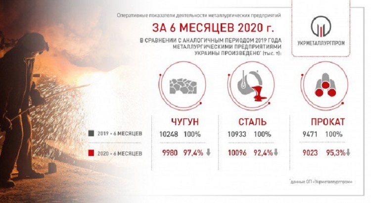 Металлургические предприятия Украины в первом полугодии 2020 года сократили выплавку стали на 7,6% по сравнению с аналогичным периодом прошлого года — до 10,10 млн тонн.
