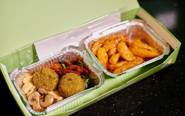В свою очередь, веганский будет включать фалафель на подушке из хумуса в сочетании со шпинатом, вялеными томатами и шампиньонами, и морковь вок в кисло-сладком соусе чили.