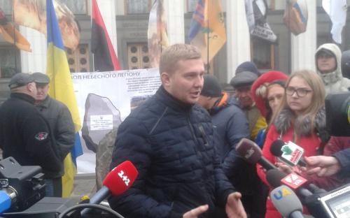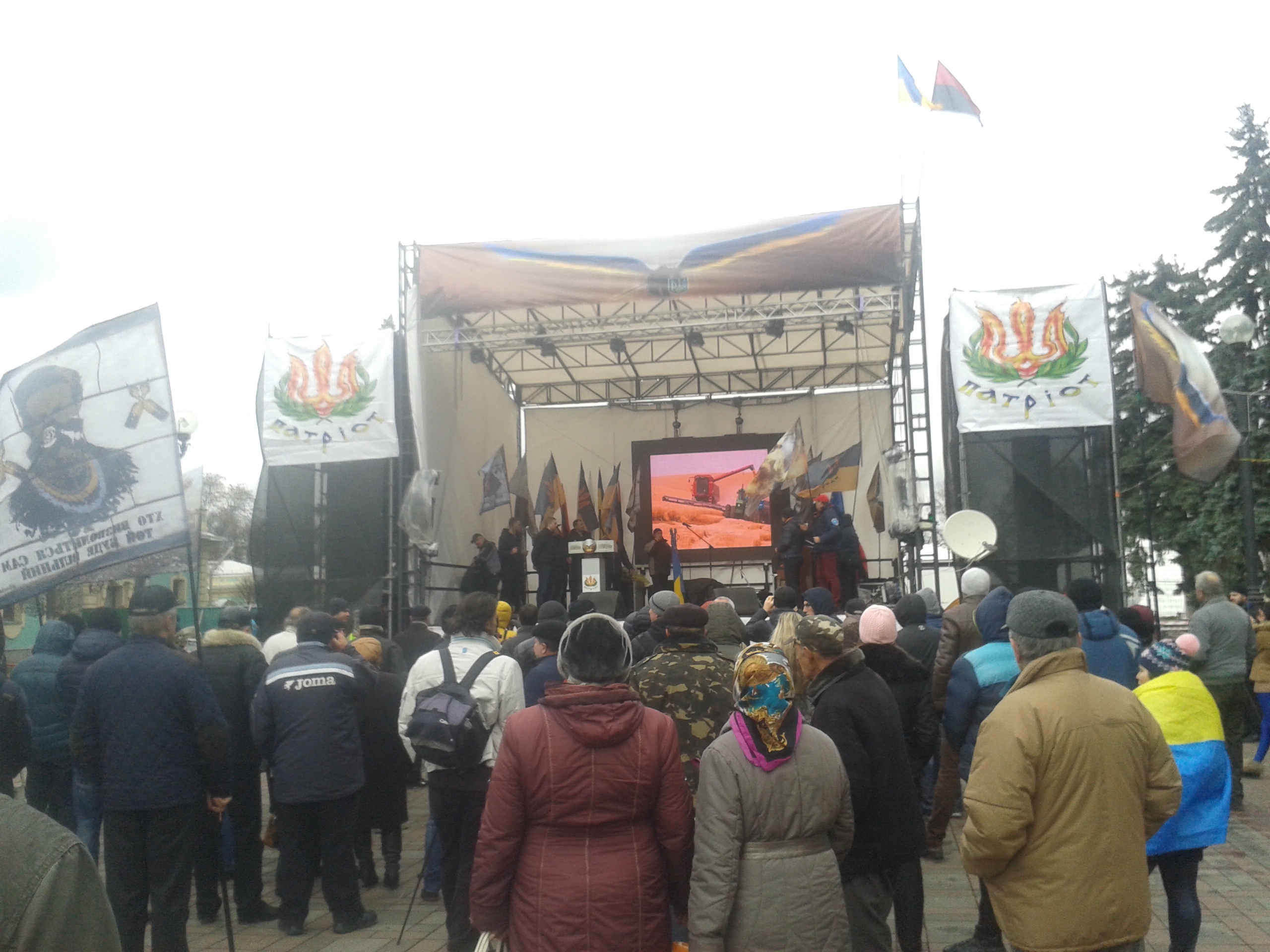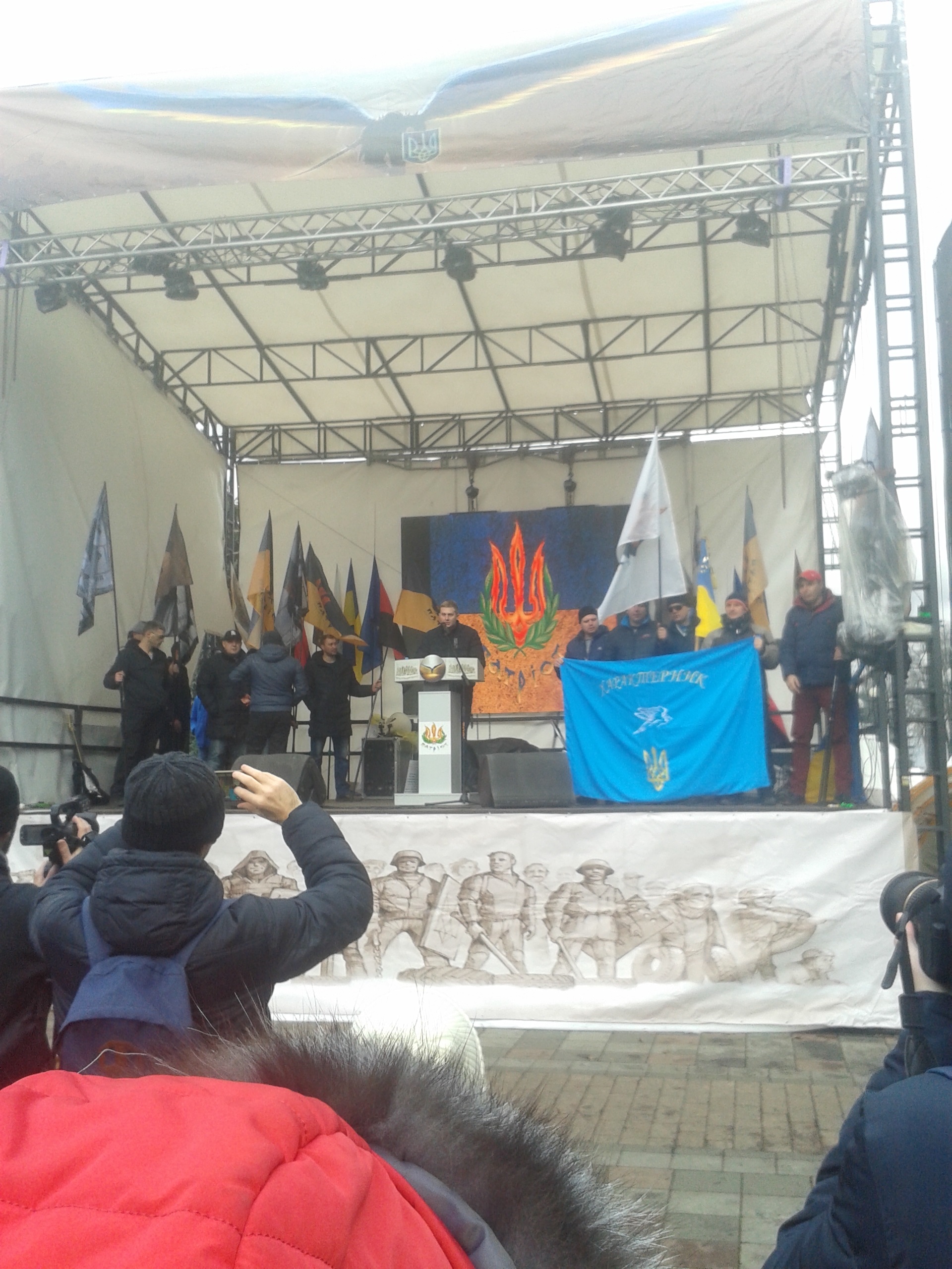 Со сцены общественник призывал единомышленников объединять усилия в противодействии тотальной коррупции, которая после смены власти в стране приобрела таких же масштабов как при президентстве Януковича. И в то же время, по его словам, нынешнее руководство страны бездействует в борьбе с коррупцией, проводя только видимость реформ и получая многомиллиардные дивиденды «от прогнившей системы».