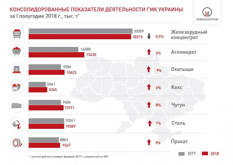 По прогнозам ОП «Укрметаллургпром» в августе 2018 года прогнозируется производство основных видов продукции в следующих объёмах: чугуна – порядка 1,8 млн.т, стали – 1,8 млн.т, проката – 1,6 млн.т.