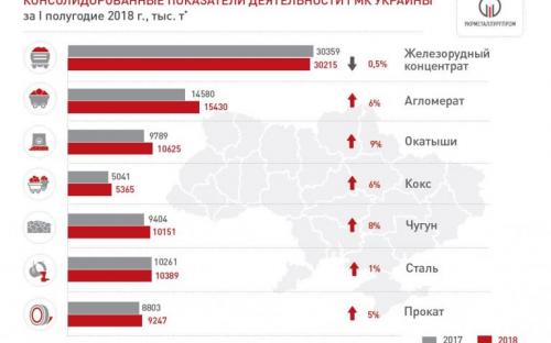 В Украине за 6 месяцев 2018 года по сравнению с аналогичным периодом 2017 года наблюдается увеличение производства основных видов металлопродукции. Это стало возможным благодаря стабилизации обеспечения предприятий железорудным сырьем и коксом, а также вводу в эксплуатацию доменной печи № 3 на МК «Запорожсталь» после реконструкции, сообщает Укрметаллургпром.