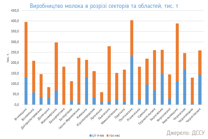 "Нехарактерным является то, что существенно начали сокращать производство молока домохозяйства крупнейших молочных регионов. Если раньше основное сокращение пришлось на оккупированные территории и Запад, то теперь на 13,2% сократилось производство молока в Винницкой области - до 264,8 тыс. т, на 14%; в Черниговской области - до 115,2 тыс. т, на 19,2%; в Харьковской области - до 117,2 тыс. т", - отметили аналитики.