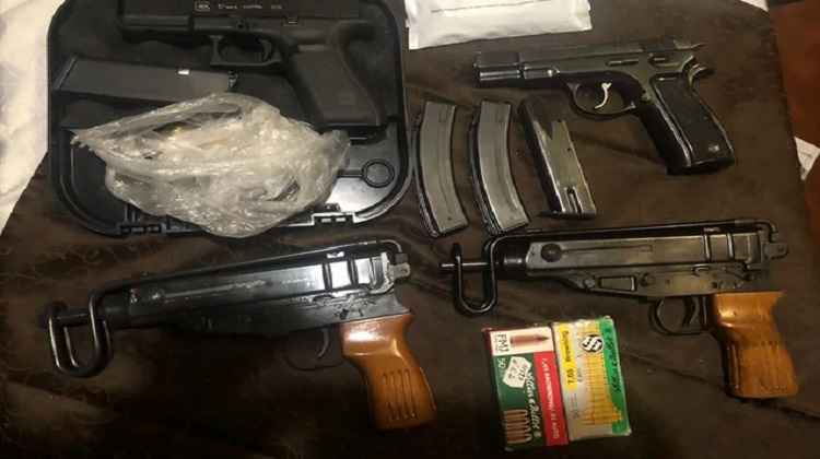 С места происшествия правоохранители изъяли четыре предмета, похожие на пистолеты иностранного производства "Глок 17" и "CHZ", пистолеты-автоматы "Скорпион", а также 123 патрона калибра 7,65 мм.