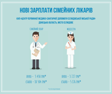«Размер вознаграждения больше не привязан к бюджетной сетке. Теперь руководители этих медучреждений могут устанавливать уровень зарплаты в зависимости от количества деклараций, подписанных с врачом или других показателей. Решение по зарплатной политике в каждом конкретном медицинском учреждении принимает коллектив, поэтому подход к оплате труда и момент начала повышения отличается в каждом учреждении», — отмечается в сообщении.