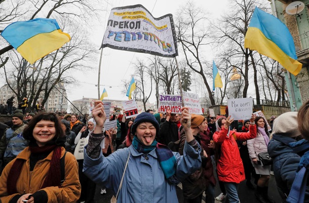 Вместе с тем, как сообщает "Громадське", параллельно с Маршем женщин на Михайловскую площадь в Киеве вышли несколько десятков людей на акцию "Женщины против абортов". Участницы – представительницы разных организаций – призывали полностью запретить аборты в Украине.
