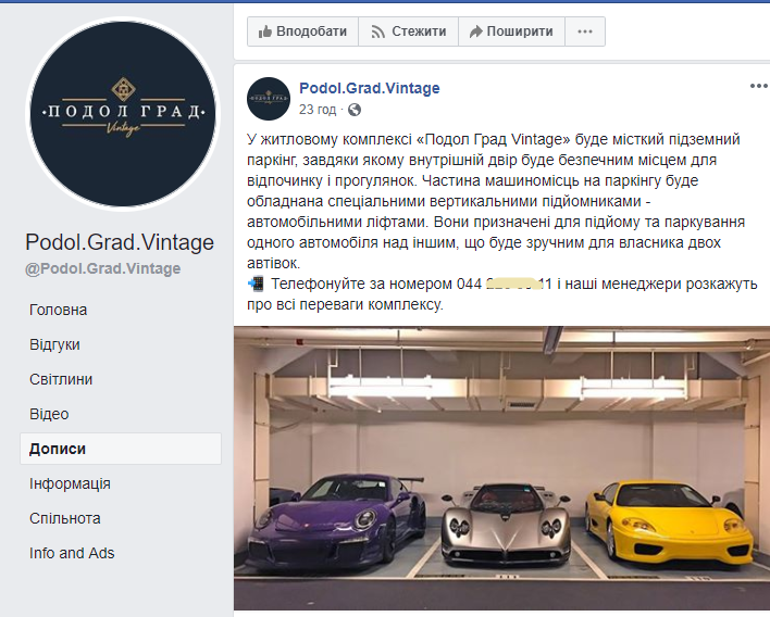 Cкріншот фейсбук-сторінки ЖК «Поділ Град Вінтаж», 29 січня 2019 р.