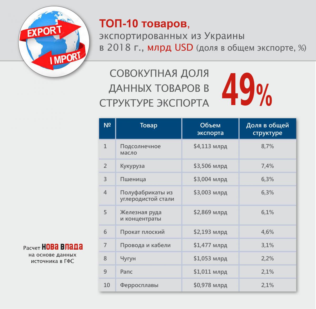 Нова Влада проанализировала внешнюю торговлю Украины и в частности экспорт товарами в 2018 году, опираясь на информацию таможенной статистики ГФС (ранее мы давали оценки за первое полугодие 2018 г.).
