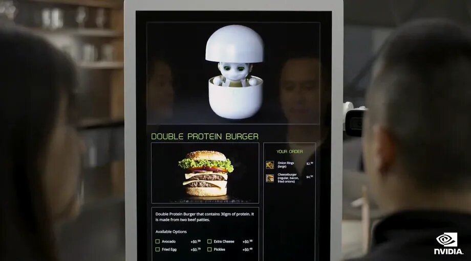 Під час презентації на щорічній конференції GTC компанії генеральний директор Nvidia Дженсен Хуанг продемонстрував кілька способів використання технології Omniverse Avatar. На одній з демонстрацій милий анімований персонаж у віртуальному кіоску розмовляє з парою про меню в ресторані швидкого харчування, відповідаючи на запитання, наприклад, які страви є вегетаріанськими. Персонаж підтримує зоровий контакт з клієнтами та реагує на їх вираз обличчя, використовуючи технологію відстеження обличчя.
