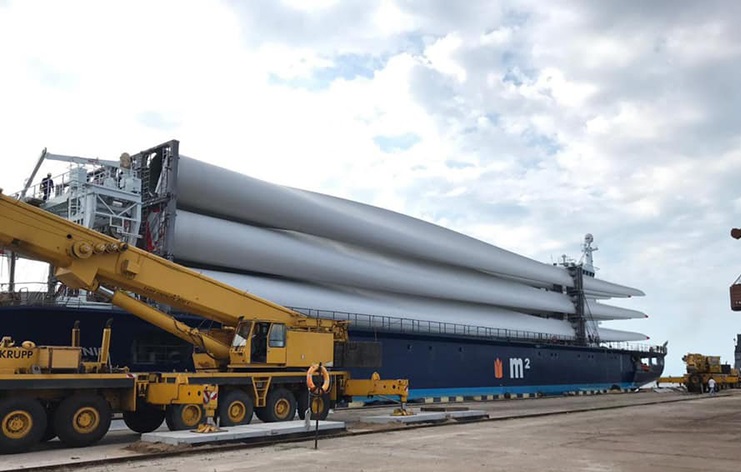 Судно доставило в Скадовск 15 лопастей, каждая из которых имеет длину почти с 25-этажный дом (74 метра) и весит 17 тонн. Кроме лопастей на судне в Скадовск прибыли еще 90 тонн других комплектующих. Для безопасной разгрузки и транспортировки крупногабаритного груза в порту и городе были проведены работы по подготовке автодорог и габаритов для проезда специальных автоприцепов длиной 80 метров.