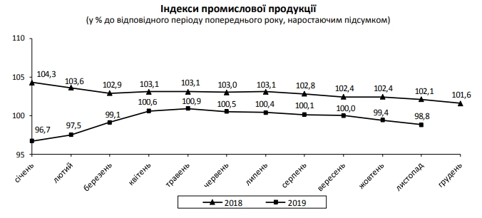 Как сообщалось ранее, в Украине объемы промышленного производства в октябре 2019 года по сравнению с аналогичным месяцем прошлого года сократились на 5%.