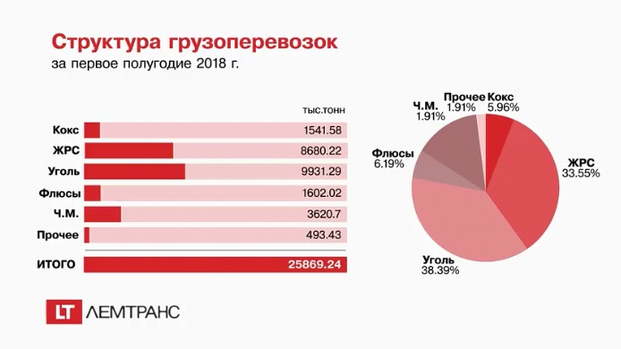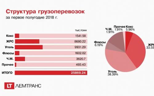 Структура нагрузки в целом не изменилась. Больше всего погружено угля — 9,93 млн тонн и железорудного сырья — 8,68 млн тонн. По итогам первого полугодия 2017 года этих видов груза было перевезено 10,08 млн тонн и 10,26 млн тонн соответственно.