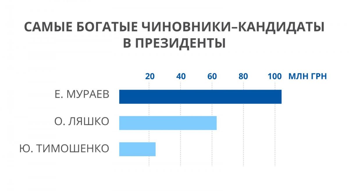 Евгений Мураев, Олег Ляшко и Юлия Тимошенко возглавили рейтинг неоправданно богатых чиновников-кандидатов в президенты.