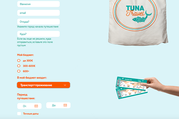 Чтобы воспользоваться услугами Tunatravel, нужно зарегистрироваться на сайте и в разделе «Подобрать» заполнить короткую форму: указать бюджет, количество путешественников, даты и предпочтения по жилью и транспорту. Сформировать первые предложения обещают уже через несколько часов. При этом, если заказчику что-то не нравится или он хочет удешевить поездку, все можно изменить — например, вместо предложенного отеля найти хостел.