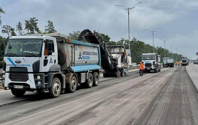 Общая протяженность участка от метро "Бориспольская" до въезда в город Борисполь составляет 17 км. В настоящее время по всей ширине правой части дороги уже ведется фрезерование покрытия.