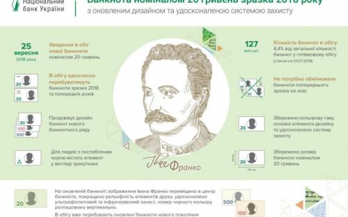 Национальный банк Украины презентовал обновленную банкноту номиналом 20 гривен образца 2018 года с обновленным дизайном и усовершенствованной системой защиты.