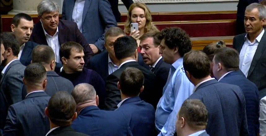 После его реплики некоторые народные депутаты поднялись с мест и столпились возле мест депутатов от ОПЗЖ под ложей прессы. При этом заместитель председателя фракции «Слуга народа» Николай Тищенко и депутат от ОПЗЖ Николай Скорик устроили потасовку. Другие народные депутаты из разных фракций пытались их успокоить. Конфликт произошел между представителями «Слуги народа» и ОПЗЖ.
