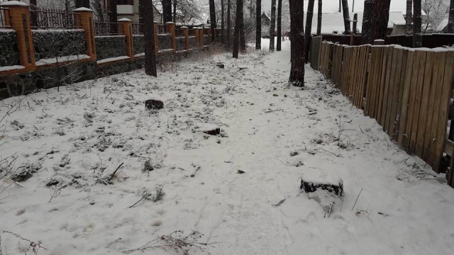 Как написала у себя в Facebook жительница Ирпеня Наталия Терентьева, на днях неизвестные вырубили около десятка сосен вблизи жилого дома по ул. Рыльского. Причем, по словам жильцов, ранее там уже появился метровый забор, ограждающий периметр территории, вероятно, под застройку.