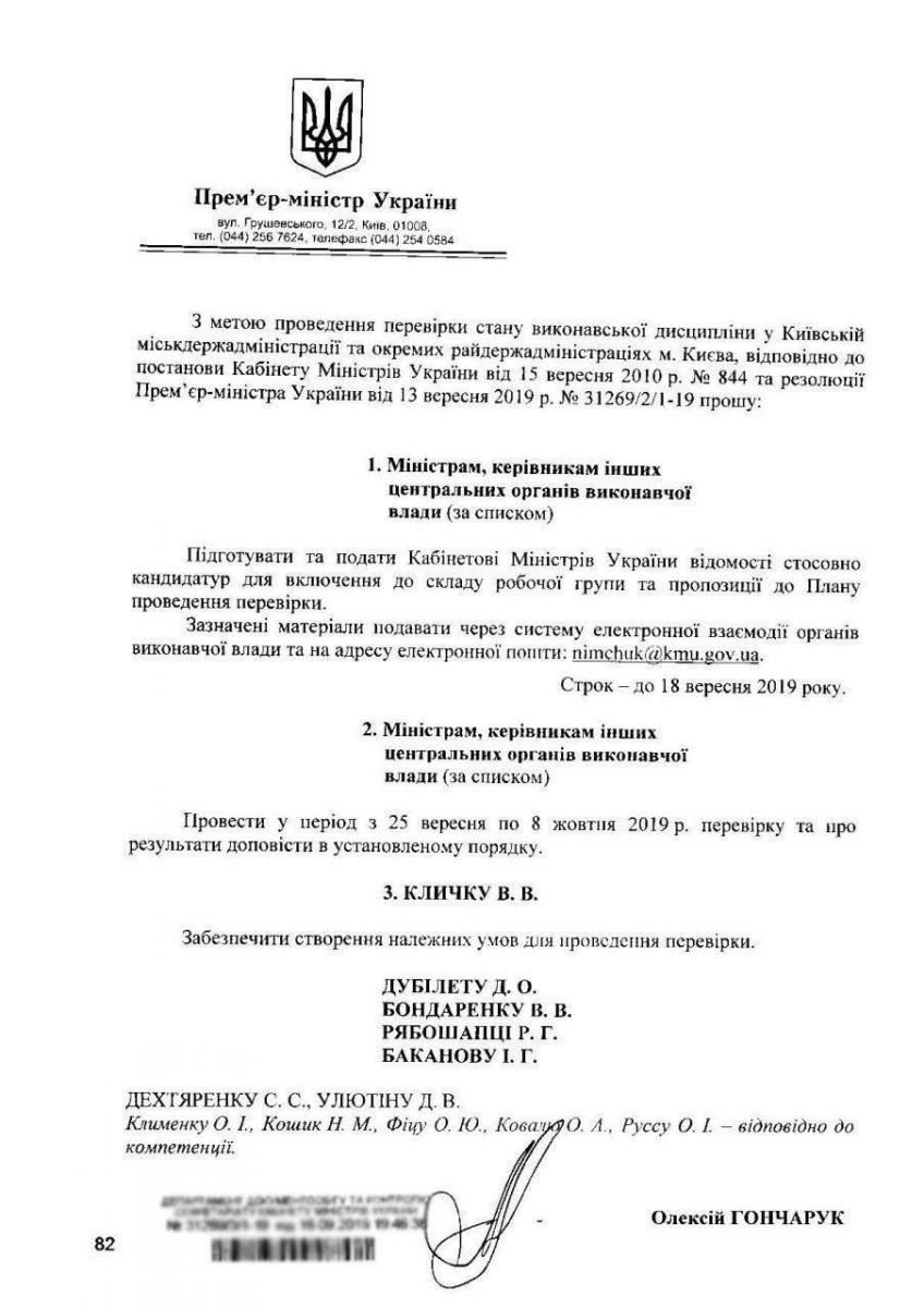 Премьер-министр Украины Алексей Гончарук распорядился провести аудит деятельности Киевской городской государственной администрации (КГГА) и отдельных столичных районных госадминистраций. Это следует из соответствующего решения за подписью главы украинского правительства, передает Нова Влада.