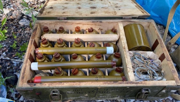 Зазначається, що серед вилученого зі схронів - протитанкові міни, бойові гранати, майже 500 вибухових пристроїв та понад 300 кг тротилу.