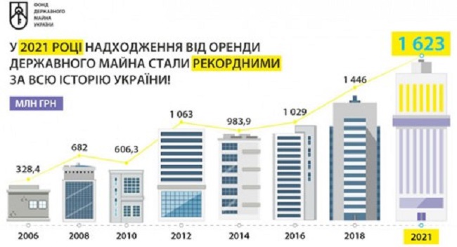 «Перехід до прозорих аукціонів оренди та розкриття всієї інформації про доступні об‘єкти на сайті www.orenda.gov.ua дозволилили суттєво підвищити ефективність використання державних активів та забезпечити рекордні надходження до держбюджету. Показник – 1,62 млрд грн – є абсолютним рекордом за 30 років», – зазначив очільник Фонду Дмитро Сенниченко.